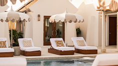 The experience begins with a slow stroll through the open-air walkway, sunlight filtering through linen curtains and the scent of native botanicals lingering in the air. Whether you choose a sea salt and aloe massage inspired by local healing traditions or drift through the salt sauna and hammam circuit, the spa is designed to ground you.